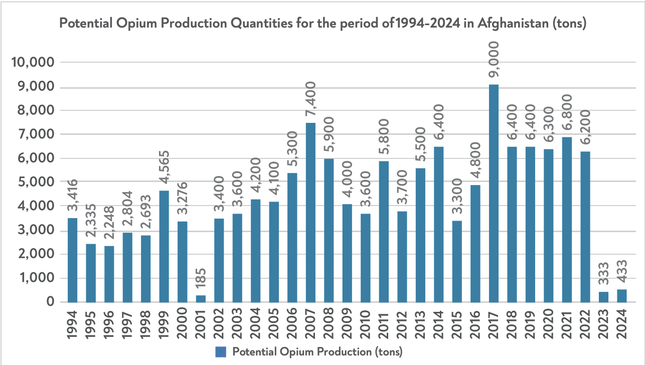 The report attributed this rise primarily to a “19% increase in opium cultivation areas in Afghanistan” in 2024.
