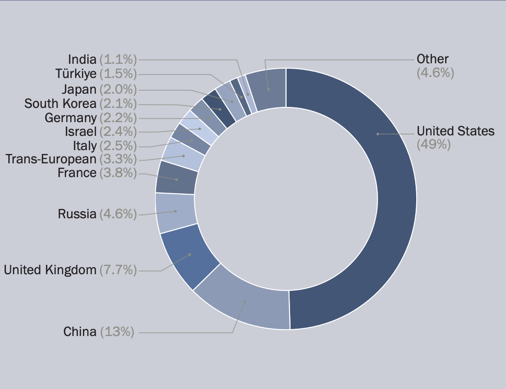 Share of the total arms revenues of companies in the SIPRI Top 100 for 2024, by country (SIPRI factsheet)