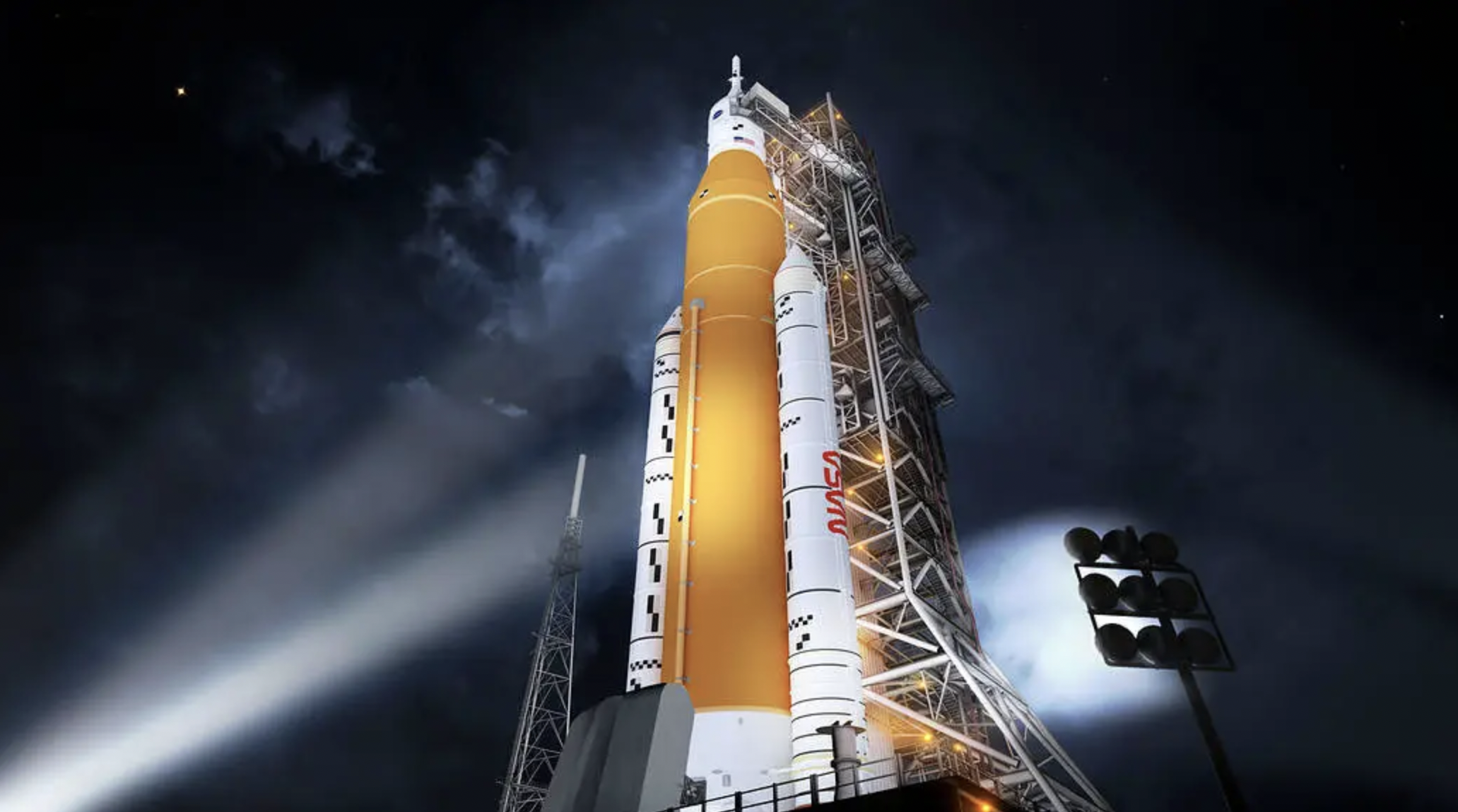 This illustration shows NASA’s new rocket, the Space Launch System (SLS), which will send